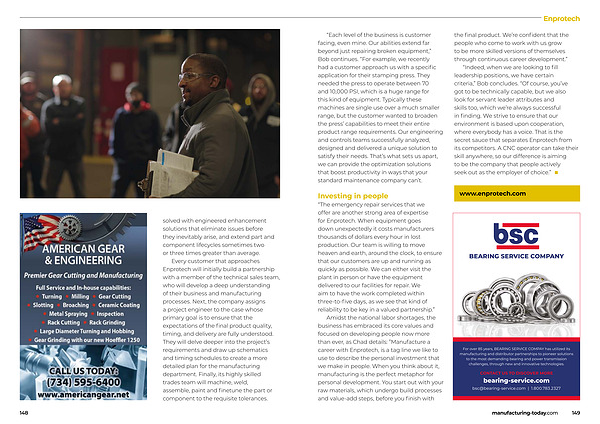 Amidst the national labor shortages , the business has embraced its core values and focused on developing people now more than ever , as Chad details : ” Manufacture a career with Enprotech , is a tag line we like to use to describe the personal investment that we make in people . When you think about it , manufacturing is the perfect metaphor for personal development . You start out with your raw materials , which undergo build processes and value-add steps , before you finish with