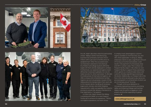 Group the UK . Adam describes what this partnership entails . “ Abbey ’ s textile manufacturing business has achieved a turnover of £ 3.3 million within just over 12 months since its establishment . After this successful start , we have been selected to manufacture the Mobile Camouflage Systems ( MCS ) for Saab ’ s UK MoD vehicles deployed in combat . Furthermore , our experienced logistics team efficiently moves parts globally not only for Saab , but also for other businesses . To alleviate the tediousness of international logistics , we offer a unique and comprehensive turnkey logistics service to businesses . As part of that , Abbey plans the transportation from each site to the nearest docks , handling all necessary paperwork , licenses , and other shipping requirements . Lastly , we expedite the customs process to ensure fast delivery of products to their destinations ,” he explains .