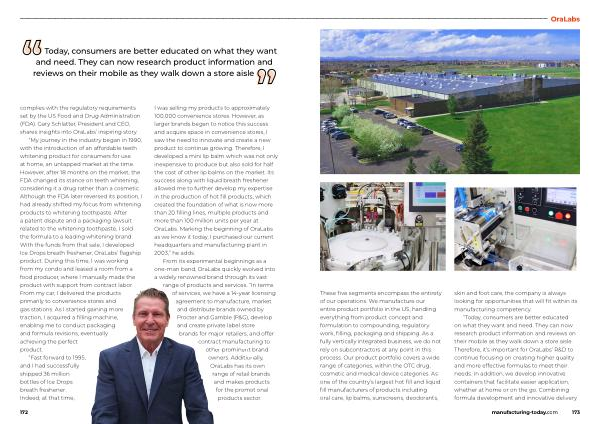 complies with the regulatory requirements set by the US Food and Drug Administration ( FDA ). Gary Schlatter , President and CEO , shares insights into OraLabs ’ inspiring story .