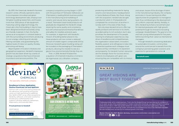 Wacker Chemie AG , 81671 Munich , Germany , www . wacker . com / contact , www . wacker . com Follow us on : manufacturing-today . com 189