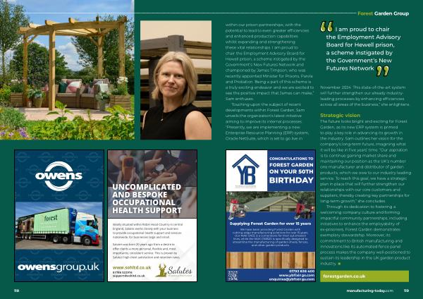 Through its dedication to fostering a welcoming company culture and forming impactful community partnerships , including initiatives to enhance the employability of ex-prisoners , Forest Garden demonstrates exemplary stewardship . Moreover , its commitment to British manufacturing and innovations like its automated fence panel process makes the company well-positioned to sustain its leadership in the UK garden product industry . ■