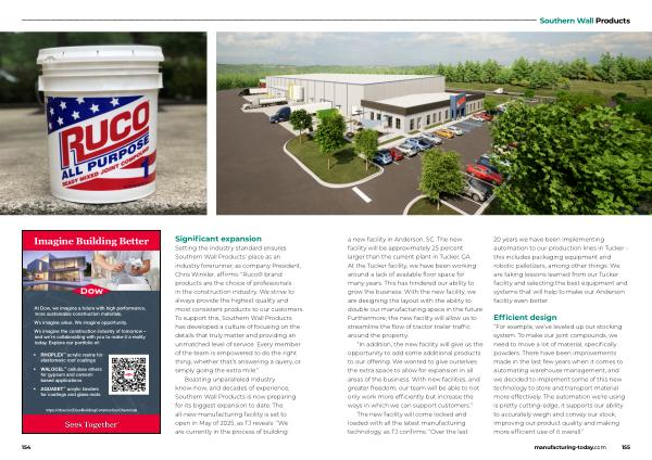 Boasting unparalleled industry know-how , and decades of experience , Southern Wall Products is now preparing for its biggest expansion to date . The all-new manufacturing facility is set to open in May of 2025 , as TJ reveals : “ We are currently in the process of building