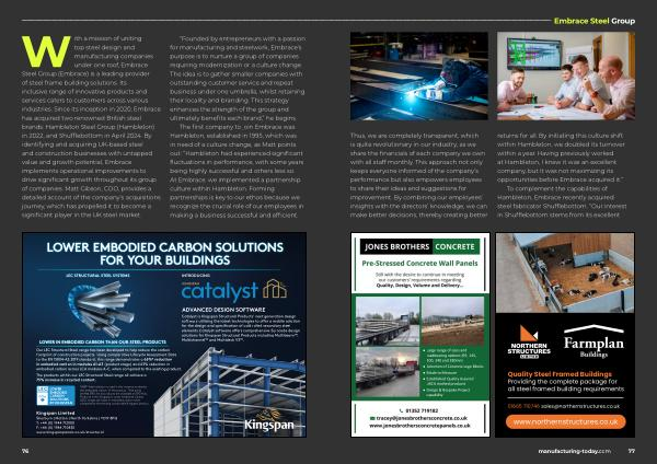 has acquired two renowned British steel brands : Hambleton Steel Group ( Hambleton ) in 2022 , and Shufflebottom in April 2024 . By identifying and acquiring UK-based steel and construction businesses with untapped value and growth potential , Embrace