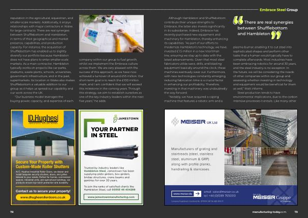 Although Hambleton and Shufflebottom contribute their unique strengths to Embrace , the latter also invests significantly in its subsidiaries . Indeed , Embrace has recently purchased new equipment and machinery for Hambleton , thereby enhancing its capabilities . “ As part of our efforts to modernize Hambleton ’ s technology , we have invested £ 1.5 million in a new Voortman line , ensuring we stay up to date with the latest advancements . Given that most steel fabricators utilize saws , drills , and blasting equipment basically around the clock , these machines eventually wear out . Furthermore , with new technologies constantly emerging , reducing fabrication time is a crucial factor in enhancing our profitability . Therefore , investing in that machinery was undoubtedly the way forward .