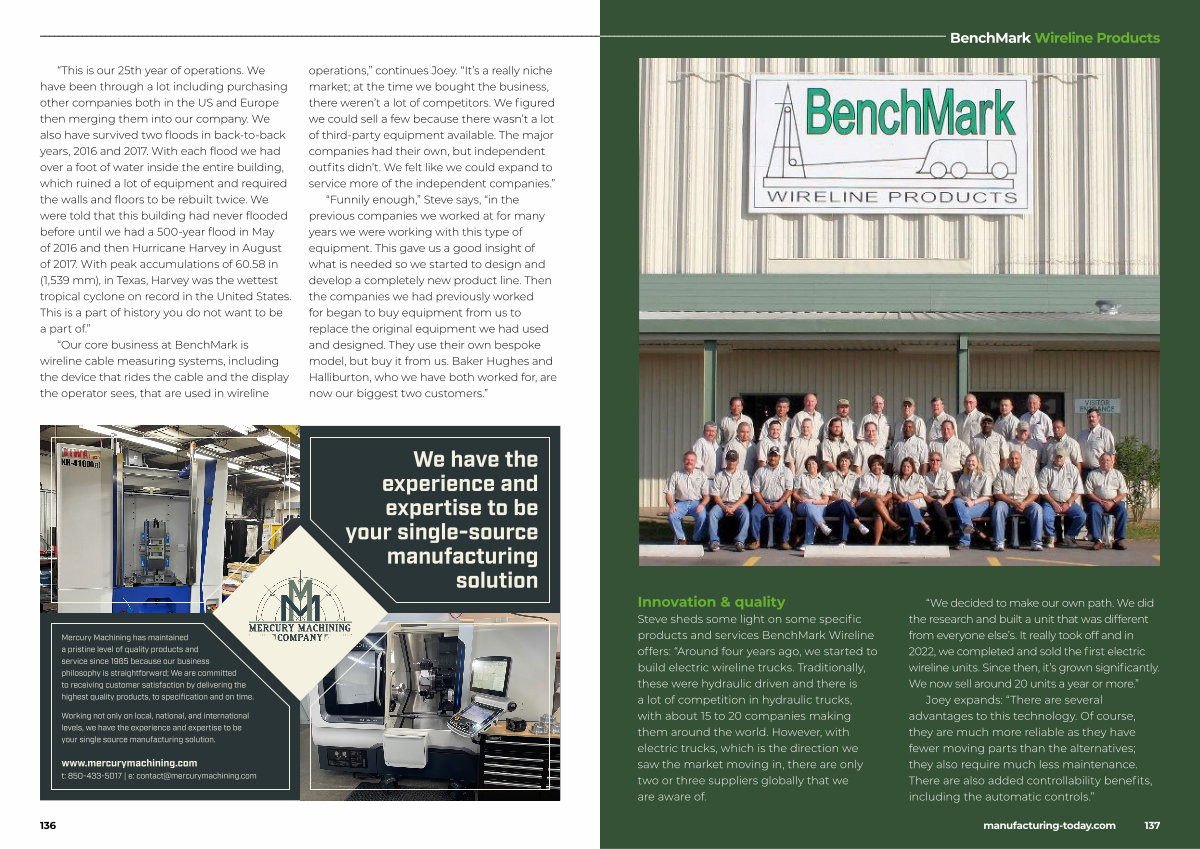 Steve sheds some light on some specific products and services BenchMark Wireline offers:“ Around four years ago, we started to build electric wireline trucks. Traditionally, these were hydraulic driven and there is a lot of competition in hydraulic trucks, with about 15 to 20 companies making them around the world. However, with electric trucks, which is the direction we saw the market moving in, there are only two or three suppliers globally that we are aware of.