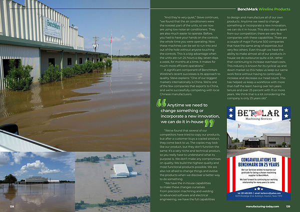 A significant component of BenchMark Wireline’ s recent successes is its approach to quality. Steve explains:“ One of our biggest markets internationally is China. We’ re one of the few companies that exports to China, and we’ re successfully competing with local Chinese manufacturers.