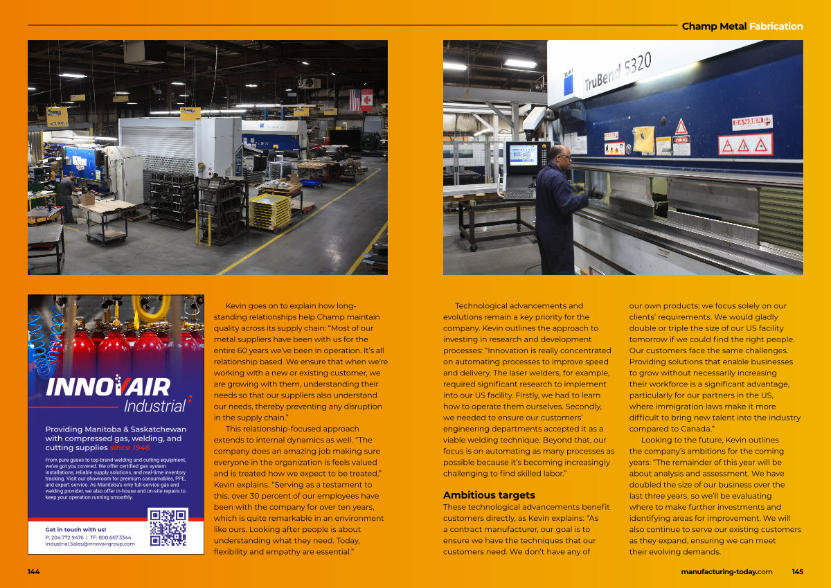 Kevin goes on to explain how longstanding relationships help Champ maintain quality across its supply chain:“ Most of our metal suppliers have been with us for the entire 60 years we’ ve been in operation. It’ s all relationship based. We ensure that when we’ re working with a new or existing customer, we are growing with them, understanding their needs so that our suppliers also understand our needs, thereby preventing any disruption in the supply chain.”