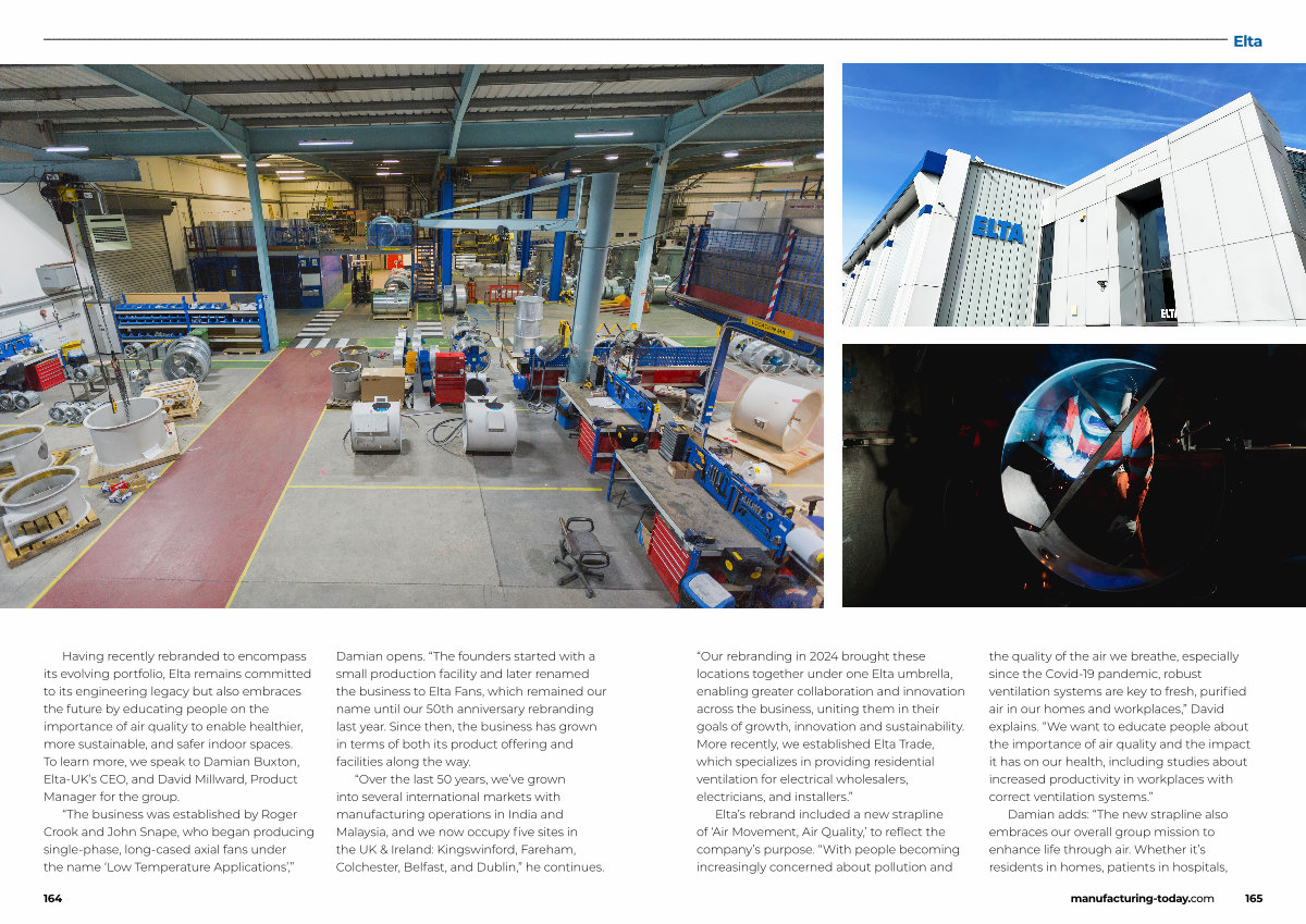 Having recently rebranded to encompass its evolving portfolio, Elta remains committed to its engineering legacy but also embraces the future by educating people on the importance of air quality to enable healthier, more sustainable, and safer indoor spaces. To learn more, we speak to Damian Buxton, Elta-UK’ s CEO, and David Millward, Product Manager for the group.