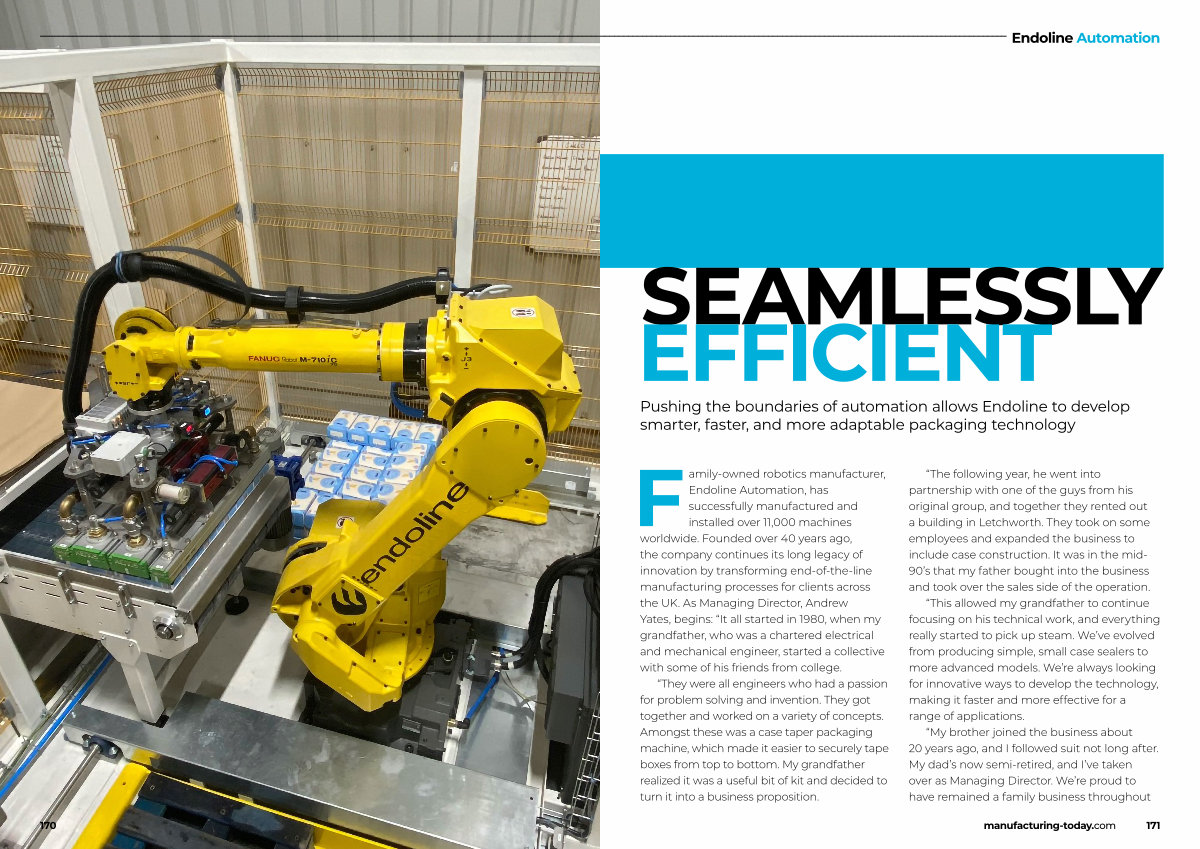Family-owned robotics manufacturer, Endoline Automation, has successfully manufactured and installed over 11,000 machines worldwide. Founded over 40 years ago, the company continues its long legacy of innovation by transforming end-of-the-line manufacturing processes for clients across the UK. As Managing Director, Andrew Yates, begins:“ It all started in 1980, when my grandfather, who was a chartered electrical and mechanical engineer, started a collective with some of his friends from college.