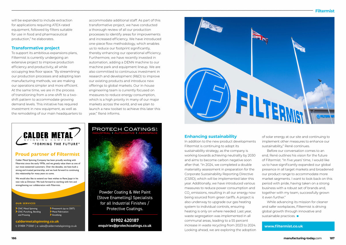 In addition to the new product developments Filtermist is continuing to adopt its sustainability strategy, as the company is working towards achieving neutrality by 2030 and aims to become carbon negative soon after that.“ In 2024, we completed a double materiality assessment in preparation for the Corporate Sustainability Reporting Directive( CSRD), which will be implemented later this year. Additionally, we have introduced various measures to reduce power consumption and
