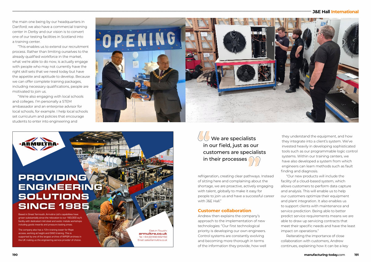 refrigeration, creating clear pathways. Instead of sitting here and complaining about the shortage, we are proactive, actively engaging with talent, globally to make it easy for people to join us and have a successful career with J & E Hall.”