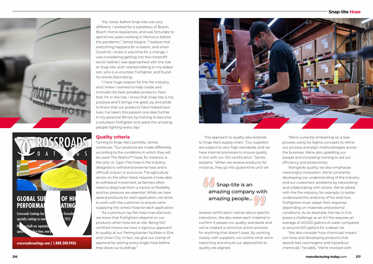 “ We also consider how chemicals impact our hose and developing products that absorb less carcinogens and hazardous chemicals,” he adds.“ We’ re involved with