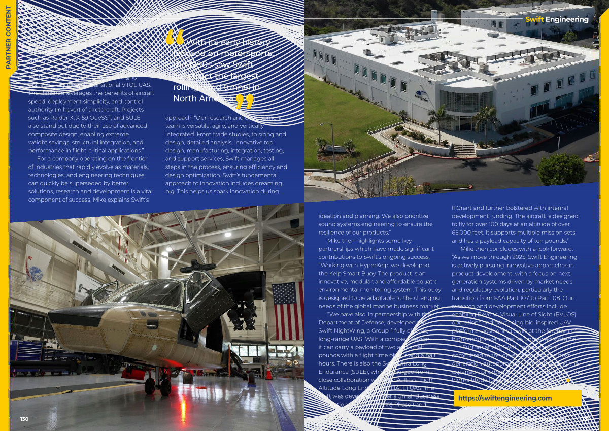 Mike then concludes with a look forward:“ As we move through 2025, Swift Engineering is actively pursuing innovative approaches in product development, with a focus on nextgeneration systems driven by market needs and regulatory evolution, particularly the transition from FAA Part 107 to Part 108. Our research and development efforts include enabling Beyond Visual Line of Sight( BVLOS) operations and advancing bio-inspired UAV platforms, positioning Swift at the forefront of high-endurance, adaptive uncrewed systems.