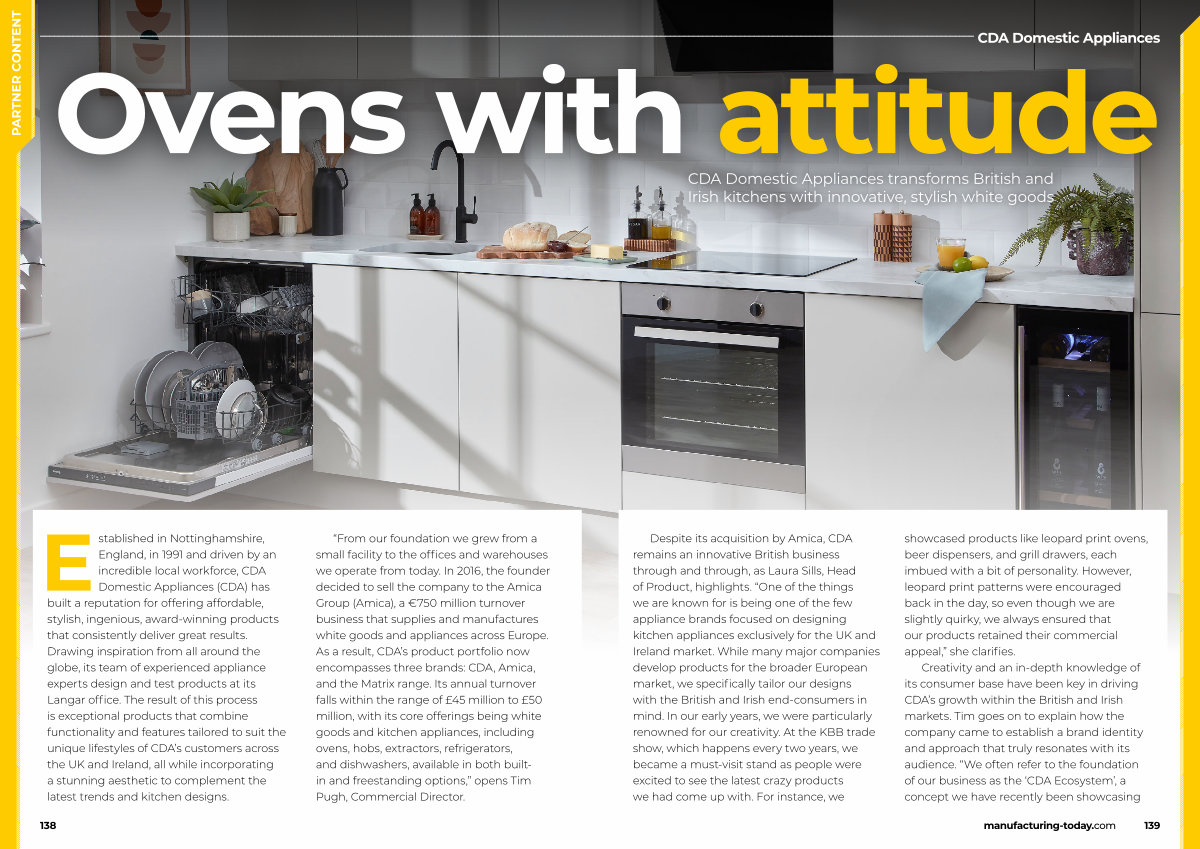 “ From our foundation we grew from a small facility to the offices and warehouses we operate from today. In 2016, the founder decided to sell the company to the Amica Group( Amica), a € 750 million turnover business that supplies and manufactures white goods and appliances across Europe. As a result, CDA’ s product portfolio now encompasses three brands: CDA, Amica, and the Matrix range. Its annual turnover falls within the range of £ 45 million to £ 50 million, with its core offerings being white goods and kitchen appliances, including ovens, hobs, extractors, refrigerators, and dishwashers, available in both builtin and freestanding options,” opens Tim Pugh, Commercial Director.