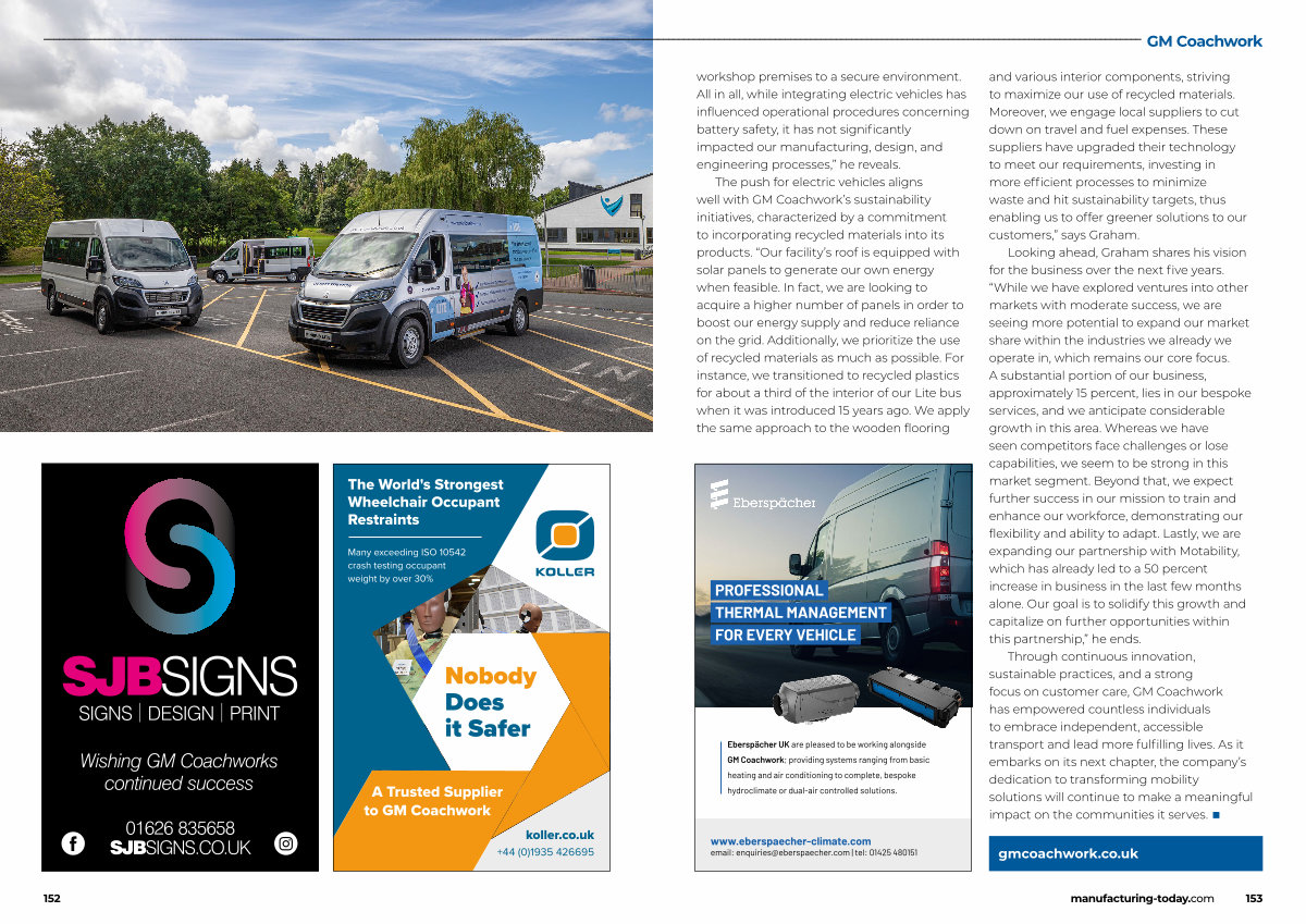 Through continuous innovation, sustainable practices, and a strong focus on customer care, GM Coachwork has empowered countless individuals to embrace independent, accessible transport and lead more fulfilling lives. As it embarks on its next chapter, the company’ s dedication to transforming mobility solutions will continue to make a meaningful impact on the communities it serves. ■