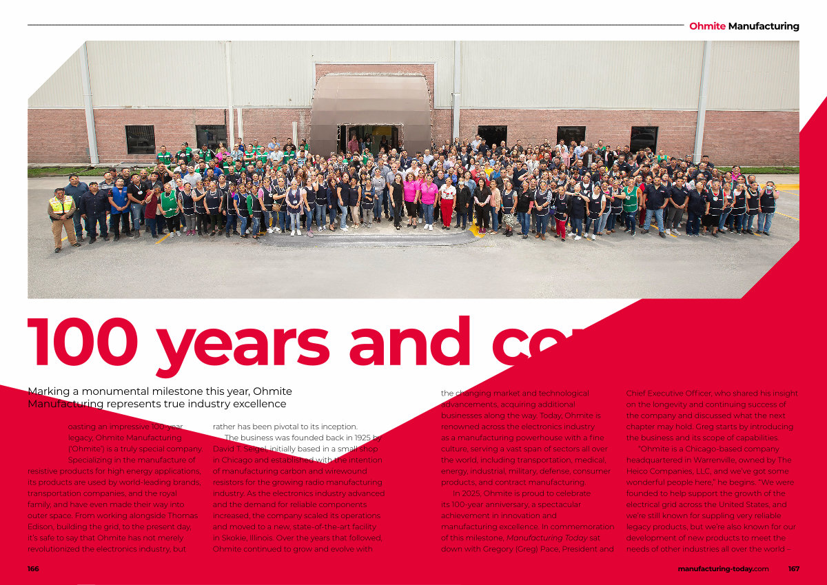 In 2025, Ohmite is proud to celebrate its 100-year anniversary, a spectacular achievement in innovation and manufacturing excellence. In commemoration of this milestone, Manufacturing Today sat down with Gregory( Greg) Pace, President and