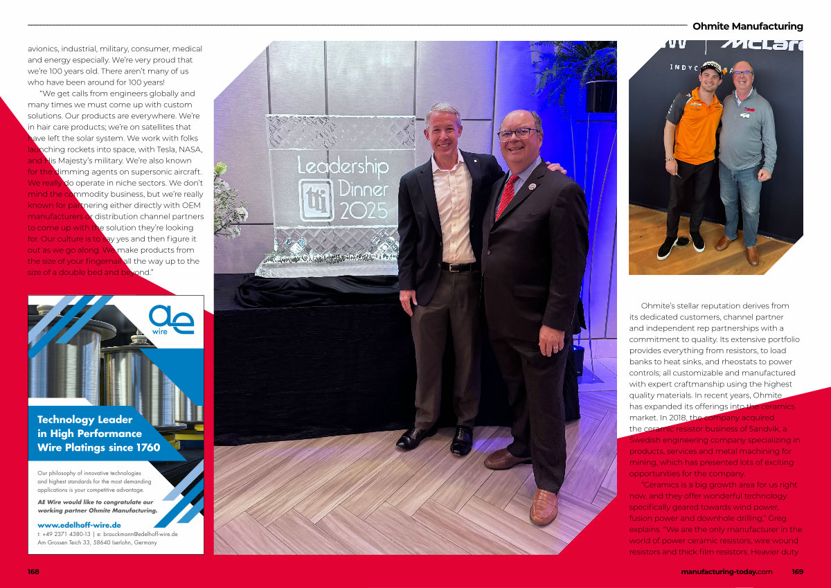 AE Wire would like to congratulate our working partner Ohmite Manufacturing.