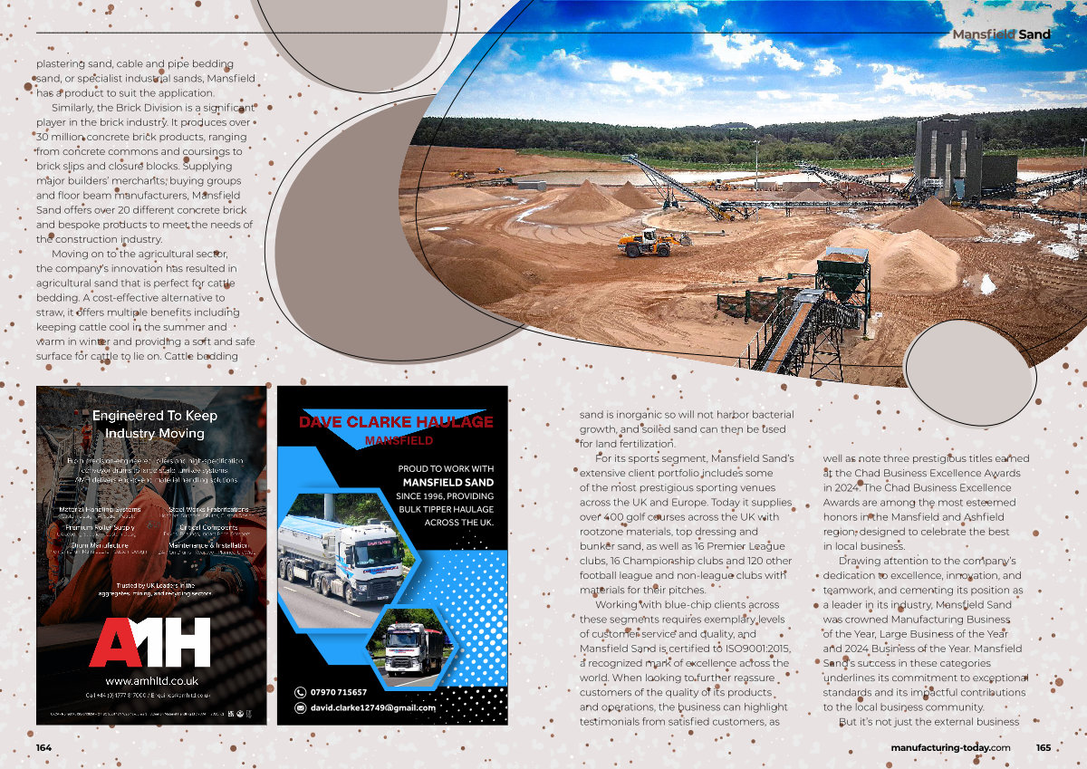 Working with blue-chip clients across these segments requires exemplary levels of customer service and quality, and Mansfield Sand is certified to ISO9001:2015, a recognized mark of excellence across the world. When looking to further reassure customers of the quality of its products and operations, the business can highlight testimonials from satisfied customers, as well as note three prestigious titles earned at the Chad Business Excellence Awards in 2024. The Chad Business Excellence Awards are among the most esteemed honors in the Mansfield and Ashfield region, designed to celebrate the best in local business.