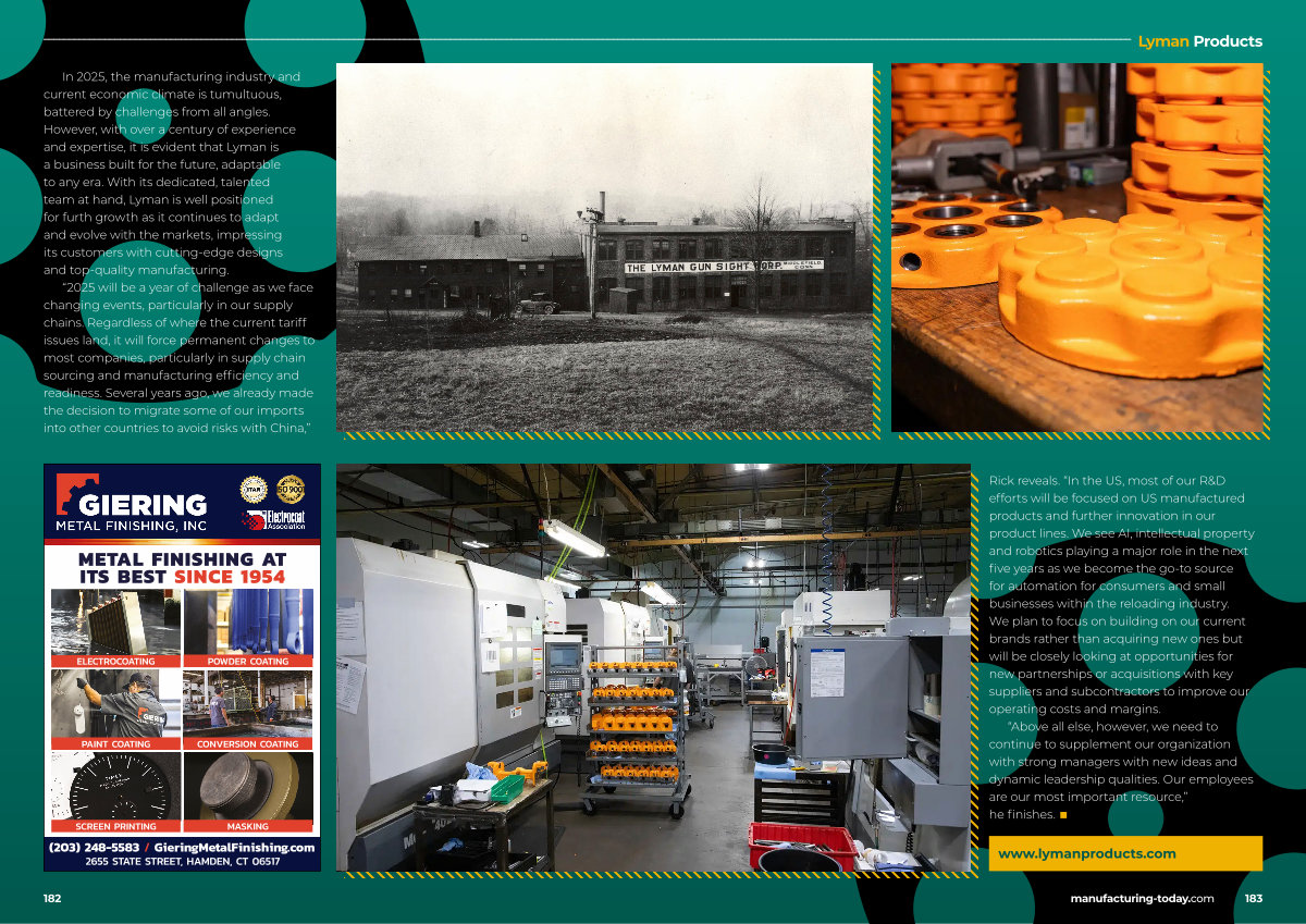 In 2025, the manufacturing industry and current economic climate is tumultuous, battered by challenges from all angles. However, with over a century of experience and expertise, it is evident that Lyman is a business built for the future, adaptable to any era. With its dedicated, talented team at hand, Lyman is well positioned for furth growth as it continues to adapt and evolve with the markets, impressing its customers with cutting-edge designs and top-quality manufacturing.