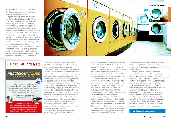 With all of these qualities in mind, it is clear that Hydro is well-positioned to maintain its current trajectory as it further grows and evolve. Extending its expertise to new heights, Hydro will continue that it’ s not just a systems supplier, but a reliable, dedicated manufacturing partner, one that leads at the forefront of innovation and will proceed to transform complex chemical management processes for many more decades to come. ■