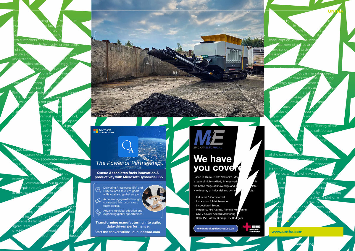 Through its partnership with Aigner Stahlbau Verkehrstechnik GmbH( Aigner), UNTHA is advancing its expansion strategy. This collaboration not only provides UNTHA with a reliable partner in the procurement market but also enhances its manufacturing footprint at Aigner’ s facility in Pöttelsdorf, Austria, thereby positioning the company for greater operational efficiency and growth in the industry.“ Established in 1990, Aigner operates with a team of 45 employees and manages approximately 1500 tons of steel per year. The Pöttelsdorf site spans 10,000 square meters and includes a new 4000-squaremeter production hall. Our growth trajectory accelerated when we acquired Aigner, a company that specializes in the large-scale production of machine components that are subsequently assembled at our Kuchl facility. Due to capacity constraints at our Kuchl site, the acquisition of Aigner has allowed us to advance our expansion plans without being hindered by local limitations. This strategic move not only addressed our capacity challenges but also solidified the longstanding partnership between our companies,” Gary informs.