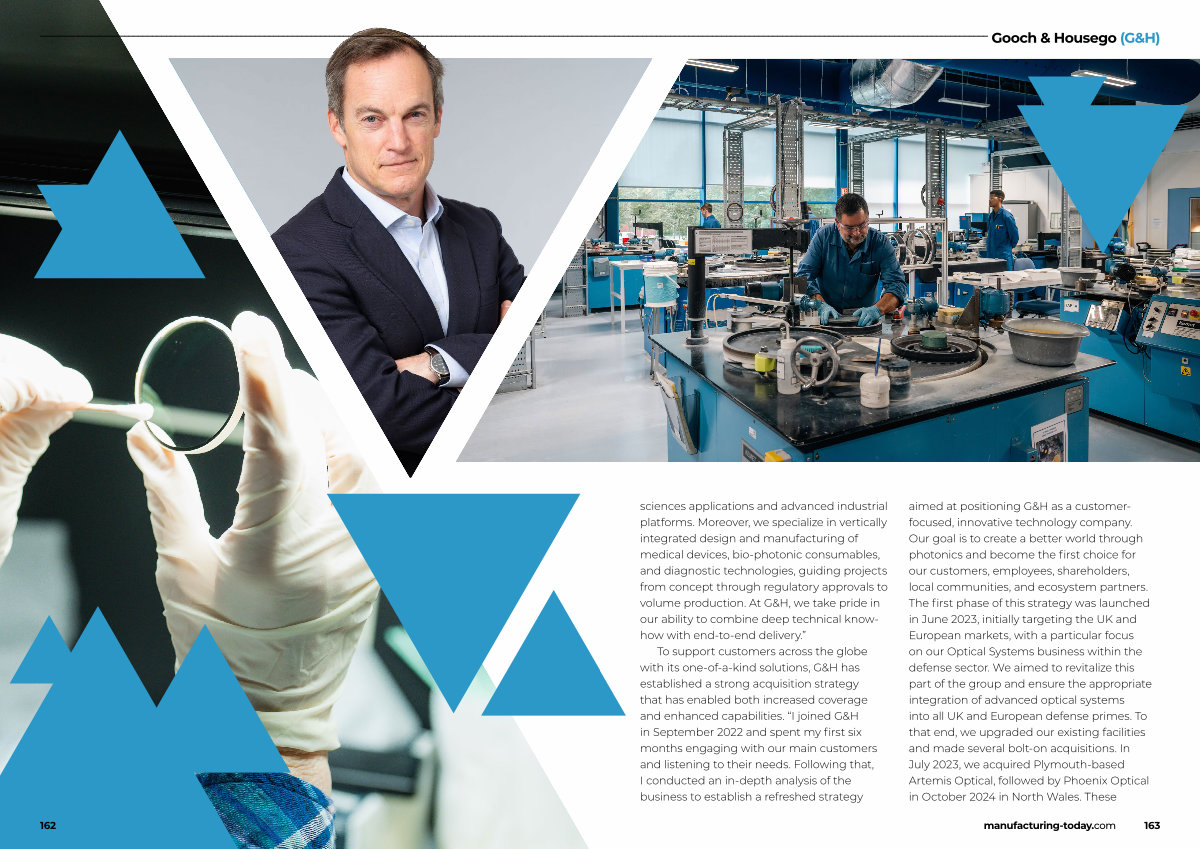 To support customers across the globe with its one-of-a-kind solutions, G & H has established a strong acquisition strategy that has enabled both increased coverage and enhanced capabilities.“ I joined G & H in September 2022 and spent my first six months engaging with our main customers and listening to their needs. Following that, I conducted an in-depth analysis of the business to establish a refreshed strategy aimed at positioning G & H as a customerfocused, innovative technology company. Our goal is to create a better world through photonics and become the first choice for our customers, employees, shareholders, local communities, and ecosystem partners. The first phase of this strategy was launched in June 2023, initially targeting the UK and European markets, with a particular focus on our Optical Systems business within the defense sector. We aimed to revitalize this part of the group and ensure the appropriate integration of advanced optical systems into all UK and European defense primes. To that end, we upgraded our existing facilities and made several bolt-on acquisitions. In July 2023, we acquired Plymouth-based Artemis Optical, followed by Phoenix Optical in October 2024 in North Wales. These