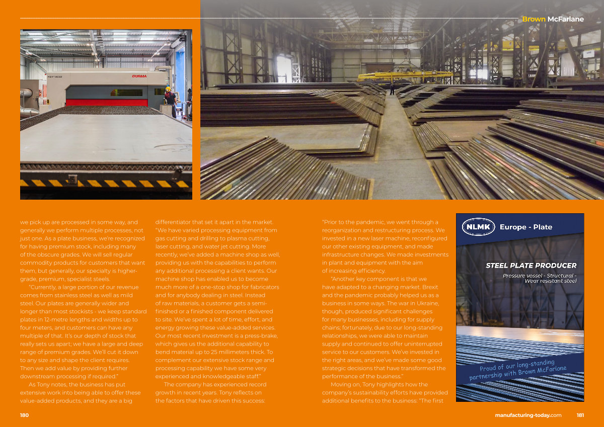 Moving on, Tony highlights how the company’ s sustainability efforts have provided additional benefits to the business:“ The first manufacturing-today. com 181