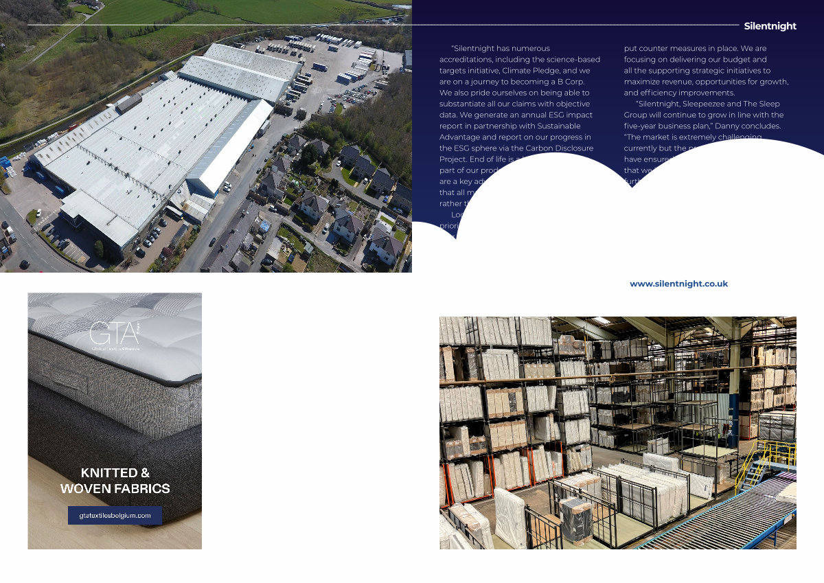 “ Silentnight, Sleepeezee and The Sleep Group will continue to grow in line with the five-year business plan,” Danny concludes.“ The market is extremely challenging currently but the processes we have in place have ensured we are in a great position and that we have a strong, resilient business with further capacity to grow. Both businesses are so important to the local communities, and it is these people that have contributed to the success over the years. There are many long-serving individuals on both sites who have a genuine sense of pride in their place of work and are so passionate about the products they are involved with.” ■