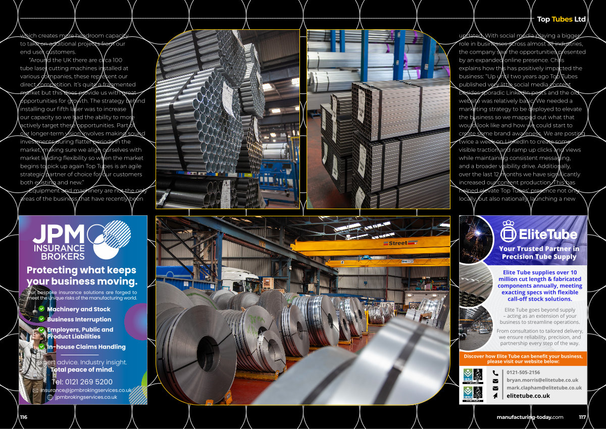 updated. With social media playing a bigger role in businesses across almost all industries, the company saw the opportunities presented by an expanded online presence. Chris explains how this has positively impacted the business:“ Up until two years ago Top Tubes published very little social media content besides sporadic LinkedIn posts and the old website was relatively basic. We needed a marketing strategy to be deployed to elevate the business so we mapped out what that would look like and how we could start to create some brand awareness. We are posting twice a week on LinkedIn to create some visible traction and ramp up clicks and views while maintaining consistent messaging, and a broader visibility drive. Additionally, over the last 12 months we have significantly increased our content production. This has helped elevate Top Tubes’ presence not only locally, but also nationally, launching a new
