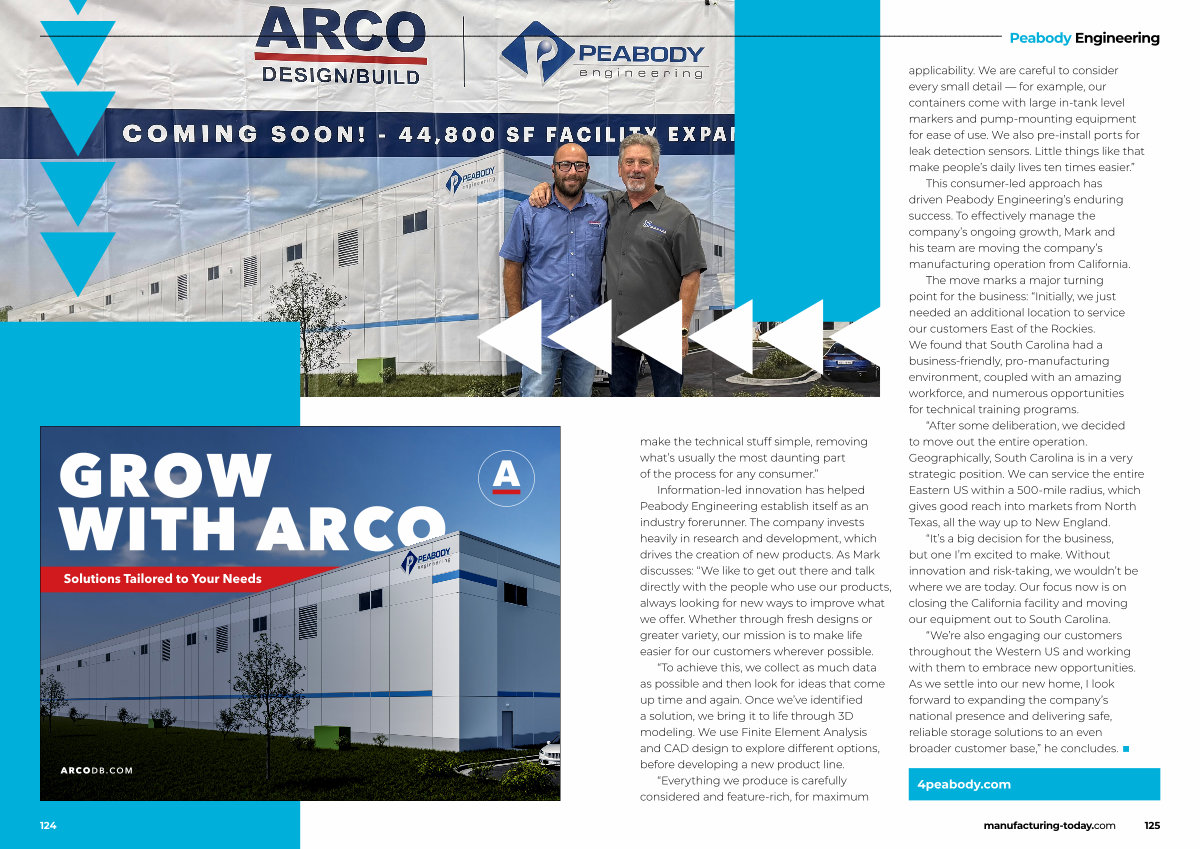 This consumer-led approach has driven Peabody Engineering’ s enduring success. To effectively manage the company’ s ongoing growth, Mark and his team are moving the company’ s manufacturing operation from California. The move marks a major turning point for the business:“ Initially, we just needed an additional location to service our customers East of the Rockies. We found that South Carolina had a business-friendly, pro-manufacturing environment, coupled with an amazing workforce, and numerous opportunities for technical training programs.
