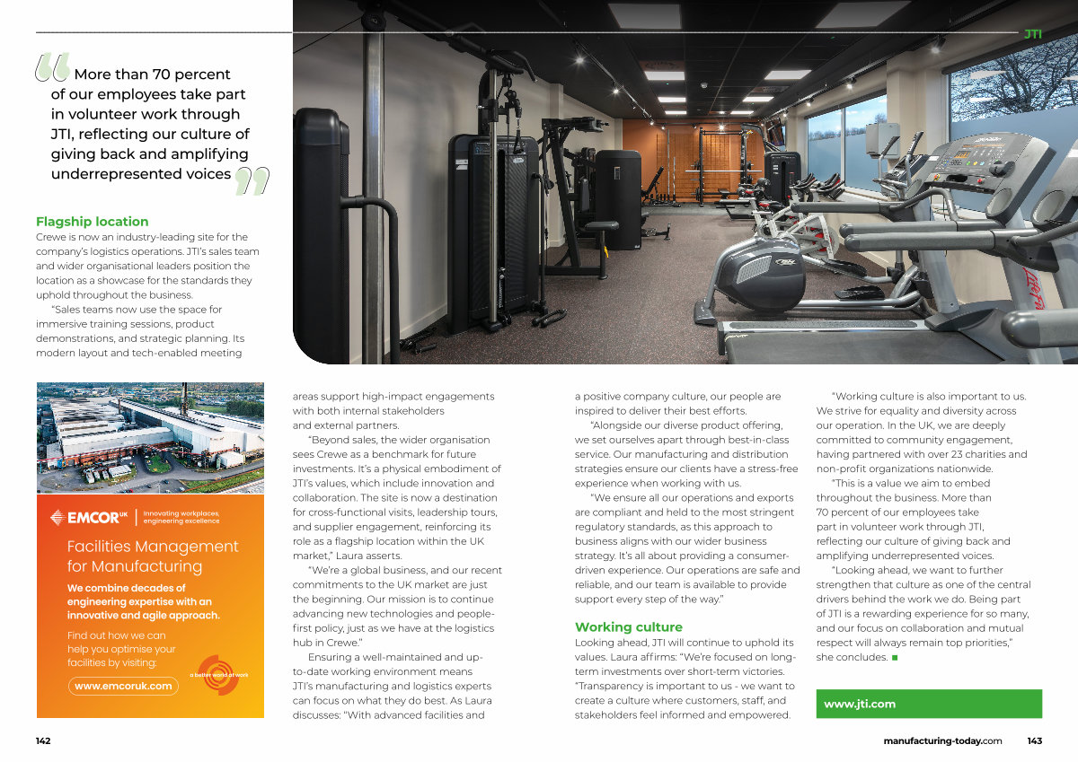 “ Looking ahead, we want to further strengthen that culture as one of the central drivers behind the work we do. Being part of JTI is a rewarding experience for so many, and our focus on collaboration and mutual respect will always remain top priorities,” she concludes. ■