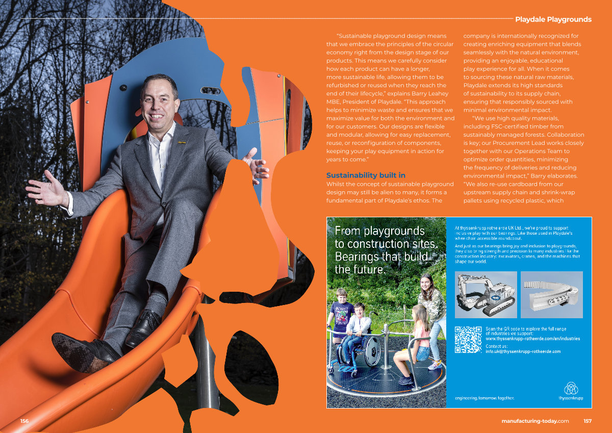 “ Sustainable playground design means that we embrace the principles of the circular economy right from the design stage of our products. This means we carefully consider how each product can have a longer, more sustainable life, allowing them to be refurbished or reused when they reach the end of their lifecycle,” explains Barry Leahey MBE, President of Playdale.“ This approach helps to minimize waste and ensures that we maximize value for both the environment and for our customers. Our designs are flexible and modular, allowing for easy replacement, reuse, or reconfiguration of components, keeping your play equipment in action for years to come.”
