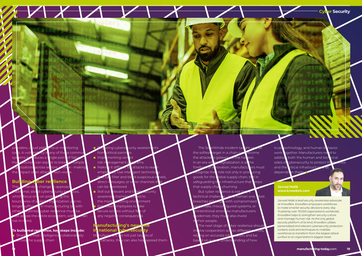 The next stage of cyber resilience should involve cooperation across different sectors, relying on accurate information, and be based on a clear understanding of how trust, technology, and human behavior work together. Manufacturers need to address both the human and technical sides of cybersecurity to protect themselves and the critical infrastructure that depends on them. ■