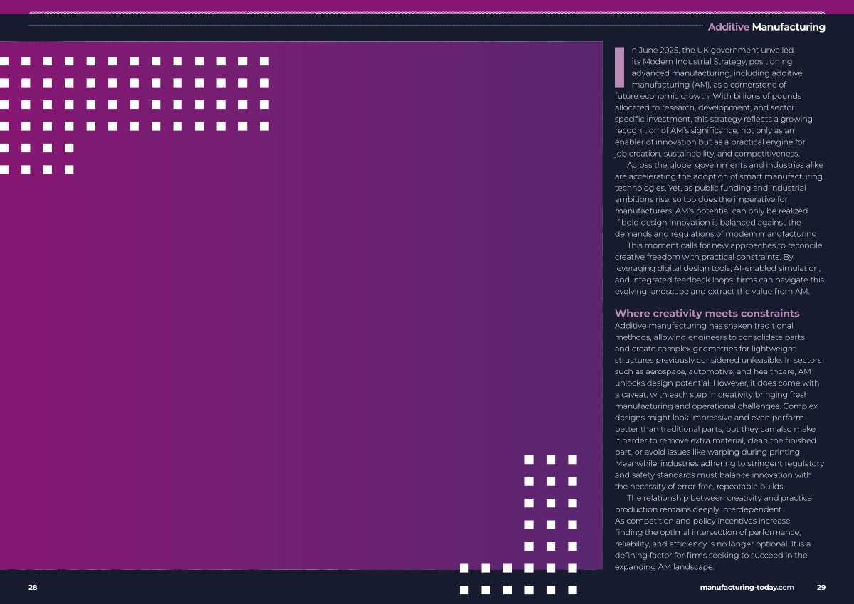 In June 2025, the UK government unveiled its Modern Industrial Strategy, positioning advanced manufacturing, including additive manufacturing( AM), as a cornerstone of future economic growth. With billions of pounds allocated to research, development, and sector specific investment, this strategy reflects a growing recognition of AM’ s significance, not only as an enabler of innovation but as a practical engine for job creation, sustainability, and competitiveness.