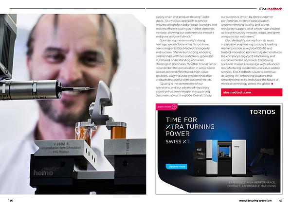 Elos Medtech’ s journey from its roots in precision engineering to today’ s leading market position as a global CDMO and trusted innovation partner truly demonstrates the company’ s legacy of adaptability and customer centric approach. Combining specialist market knowledge with advanced manufacturing capabilities and value-added services, Elos Medtech is sure to continue delivering life-enhancing solutions that simplify complexity and shape the future of medical technology across the globe. ■