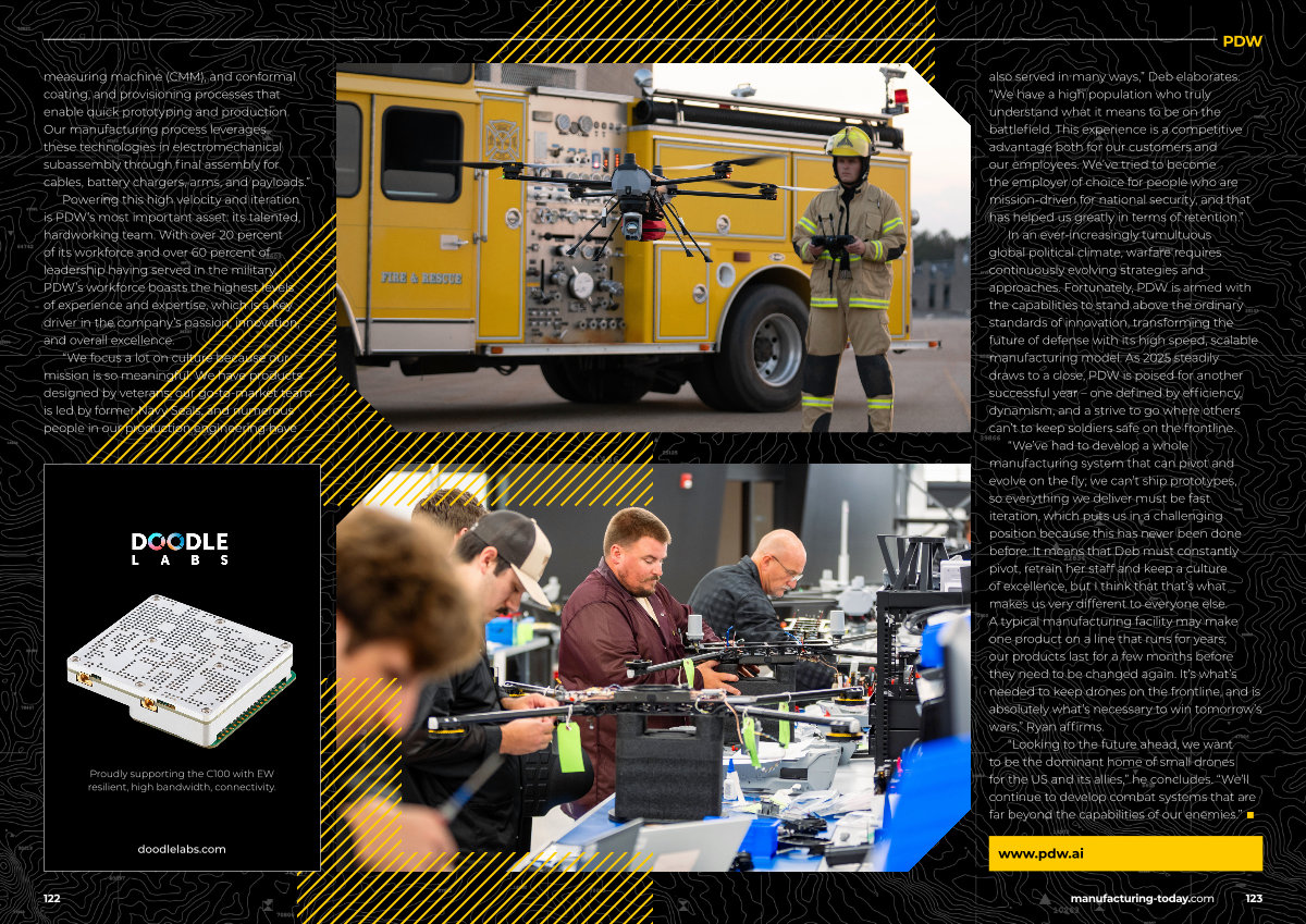 Powering this high velocity and iteration is PDW’ s most important asset: its talented, hardworking team. With over 20 percent of its workforce and over 60 percent of leadership having served in the military, PDW’ s workforce boasts the highest levels of experience and expertise, which is a key driver in the company’ s passion, innovation, and overall excellence.