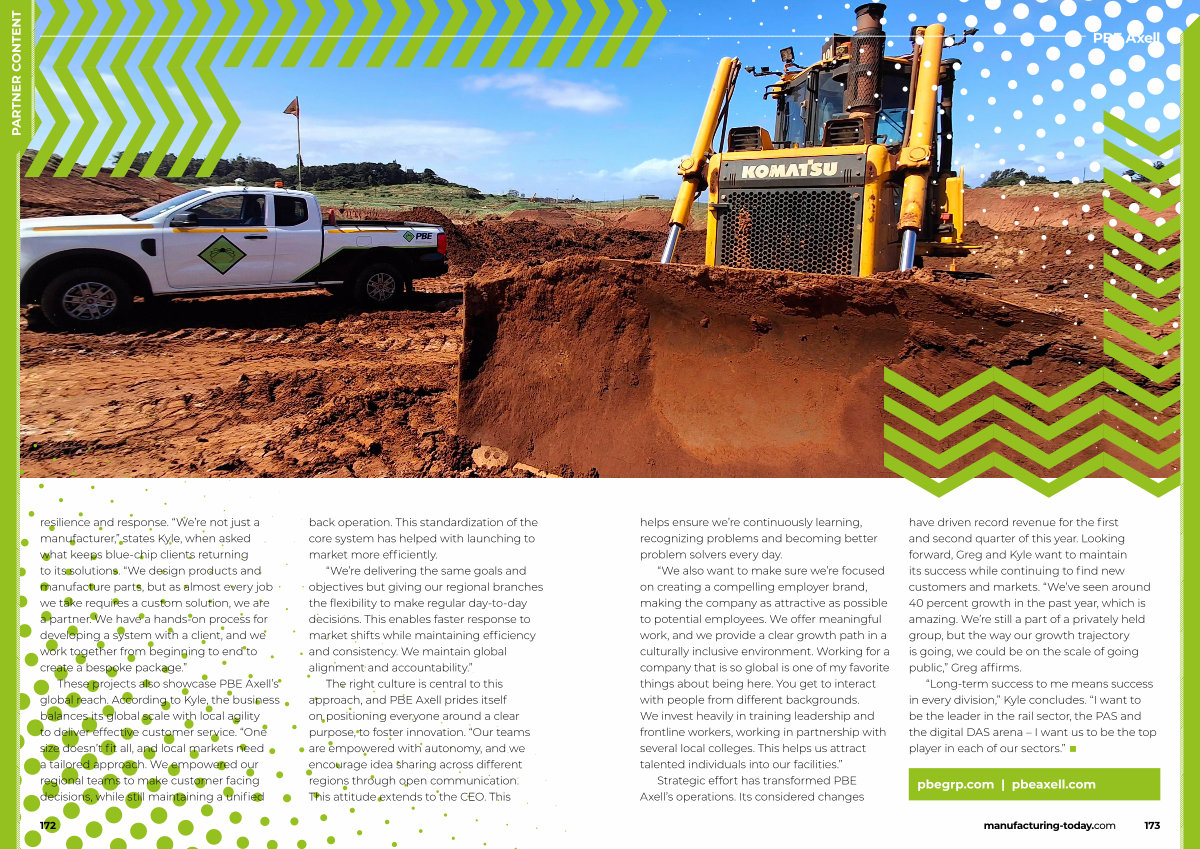 Strategic effort has transformed PBE Axell’ s operations. Its considered changes have driven record revenue for the first and second quarter of this year. Looking forward, Greg and Kyle want to maintain its success while continuing to find new customers and markets.“ We’ ve seen around 40 percent growth in the past year, which is amazing. We’ re still a part of a privately held group, but the way our growth trajectory is going, we could be on the scale of going public,” Greg affirms.