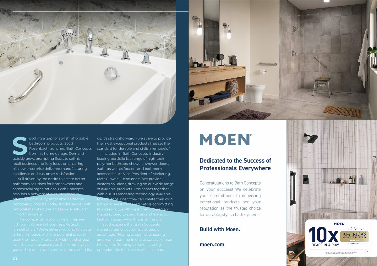 Congratulations to Bath Concepts on your success! We celebrate your commitment to delivering exceptional products and your reputation as the trusted choice for durable, stylish bath systems.