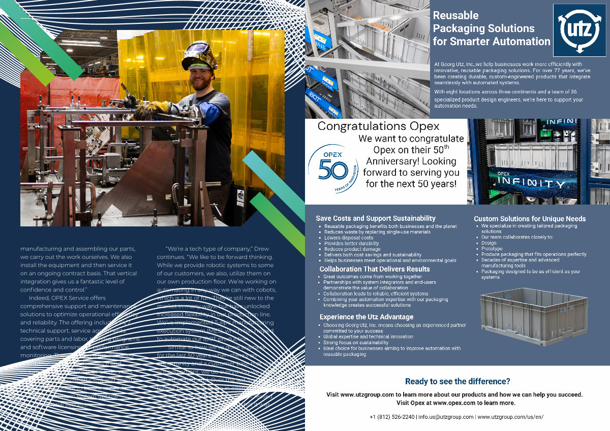“ We’ re a tech type of company,” Drew continues.“ We like to be forward thinking. While we provide robotic systems to some of our customers, we also, utilize them on our own production floor. We’ re working on automating in any way we can with cobots, which is a lot of fun. They’ re still new to the market in many ways, but have unlocked increased flexibility in our production line. We’ ve implemented Tulip’ s manufacturing execution system( MES), which has helped to automate our iBOT production.