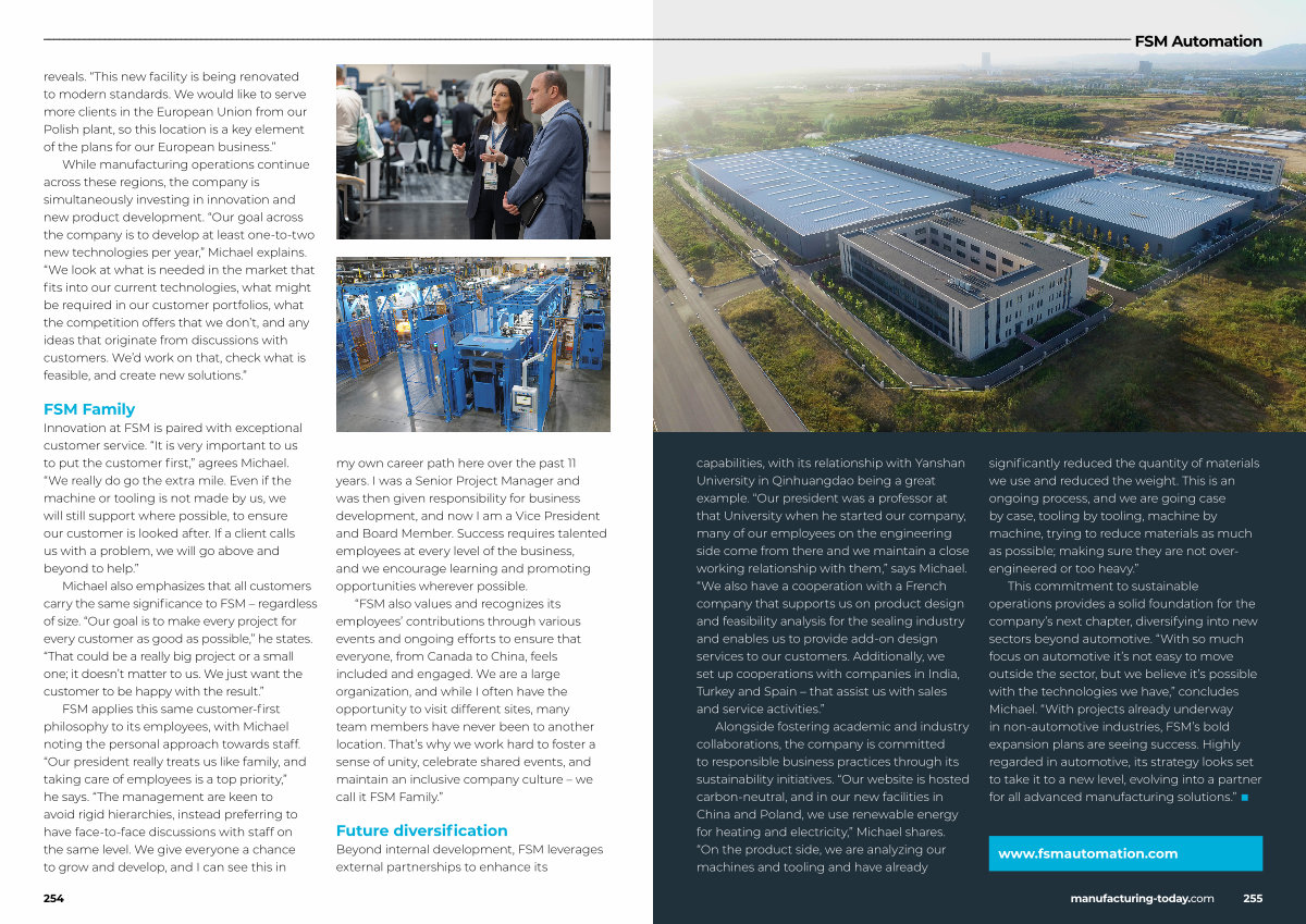 Innovation at FSM is paired with exceptional customer service.“ It is very important to us to put the customer first,” agrees Michael.“ We really do go the extra mile. Even if the machine or tooling is not made by us, we will still support where possible, to ensure our customer is looked after. If a client calls us with a problem, we will go above and beyond to help.”