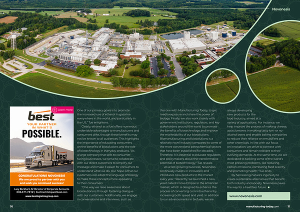 this one with Manufacturing Today, to get media exposure and share the power of biology. Finally, we also work closely with government institutions, regulators, and key stakeholders around the world to promote the benefits of biotechnology and improve the marketability of our biosolutions. Biomanufacturing and biosolutions is a relatively novel industry compared to some of the more conventional petrochemical sectors that have been established for decades. Therefore, it is essential to educate regulators and policymakers about the transformative potential of biotechnology,” Tue reveals.