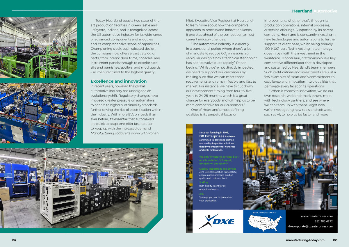 One of Heartland’ s most defining qualities is its perpetual focus on improvement, whether that’ s through its production operations, internal processes, or service offerings. Supported by its parent company, Heartland is constantly investing in new technologies and automations to further support its client base, whilst being proudly ISO 14001-certified. Investing in technology goes in pair with the investment in the workforce. Monozukuri, craftmanship, is a key competitive differentiator that is developed and sustained by Heartland’ s team members. Such certifications and investments are just a few examples of Heartland’ s commitment to excellence and innovation – two qualities that permeate every facet of its operations.