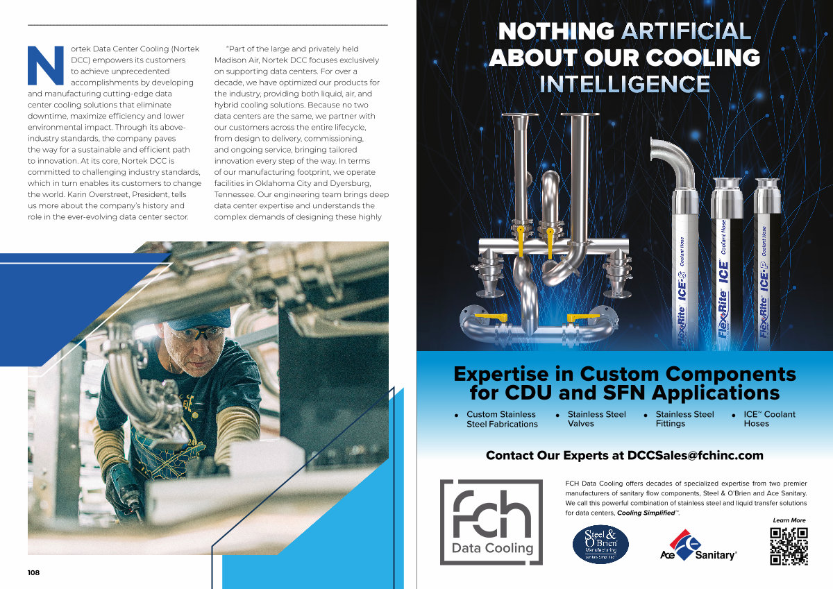 “ Part of the large and privately held Madison Air, Nortek DCC focuses exclusively on supporting data centers. For over a decade, we have optimized our products for the industry, providing both liquid, air, and hybrid cooling solutions. Because no two data centers are the same, we partner with our customers across the entire lifecycle, from design to delivery, commissioning, and ongoing service, bringing tailored innovation every step of the way. In terms of our manufacturing footprint, we operate facilities in Oklahoma City and Dyersburg, Tennessee. Our engineering team brings deep data center expertise and understands the complex demands of designing these highly 108