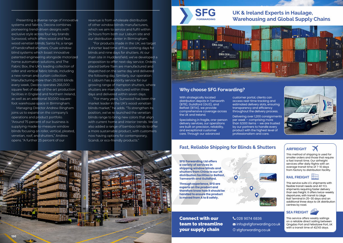 SFG Forwarding Ltd offers a variety of services in shipping window blinds and shutters from China to our UK distribution facilities in Belfast, Tamworth and Guildford.