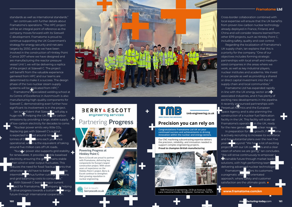 Regarding the localization of Framatome’ s UK supply chain, Ian explains that this is a priority for the company.“ One of our objectives includes forming strategic partnerships with local small and mediumsized companies in the areas where we work, as well as key industrial players, nuclear institutes and academia. We invest in our people as well as providing a shared or direct capital investment into the UK supply chain and local communities.”