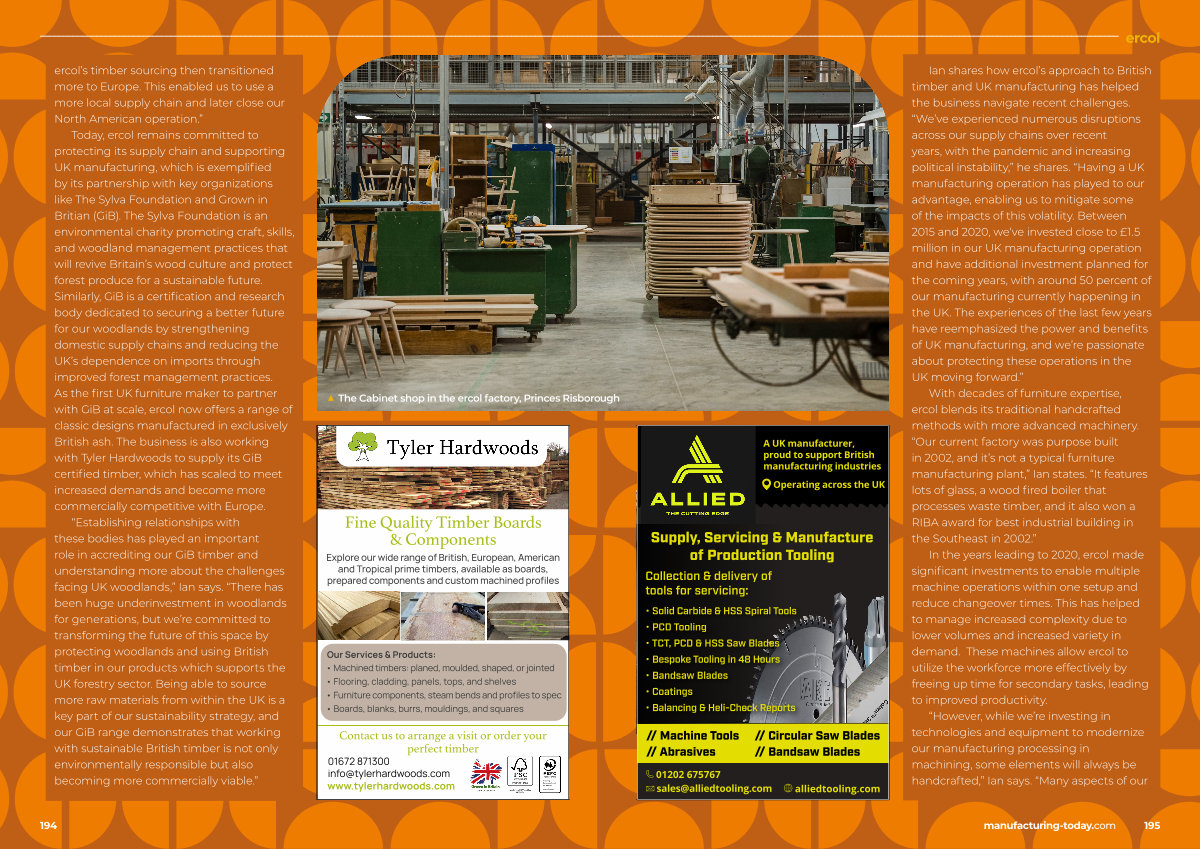 Ian shares how ercol’ s approach to British timber and UK manufacturing has helped the business navigate recent challenges.“ We’ ve experienced numerous disruptions across our supply chains over recent years, with the pandemic and increasing political instability,” he shares.“ Having a UK manufacturing operation has played to our advantage, enabling us to mitigate some of the impacts of this volatility. Between 2015 and 2020, we‘ ve invested close to £ 1.5 million in our UK manufacturing operation and have additional investment planned for the coming years, with around 50 percent of our manufacturing currently happening in the UK. The experiences of the last few years have reemphasized the power and benefits of UK manufacturing, and we’ re passionate about protecting these operations in the UK moving forward.”