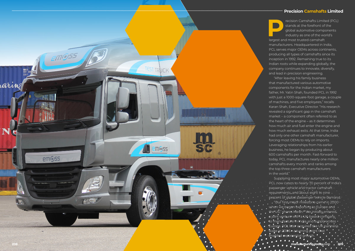“ After leaving his family business that manufactured various automotive components for the Indian market, my father, Mr. Yatin Shah, founded PCL in 1992 with just a 1000-square-foot garage, a couple of machines, and five employees,” recalls Karan Shah, Executive Director.“ His research revealed a significant gap in the camshaft market – a component often referred to as the heart of the engine – as it determines how much air and fuel enter the engine and how much exhaust exits. At that time, India had only one other camshaft manufacturer, forcing most OEMs to rely on imports. Leveraging relationships from his earlier business, he began by producing about 600 camshafts per month. Fast-forward to today, PCL manufactures nearly one million camshafts every month and ranks among the top three camshaft manufacturers in the world.”