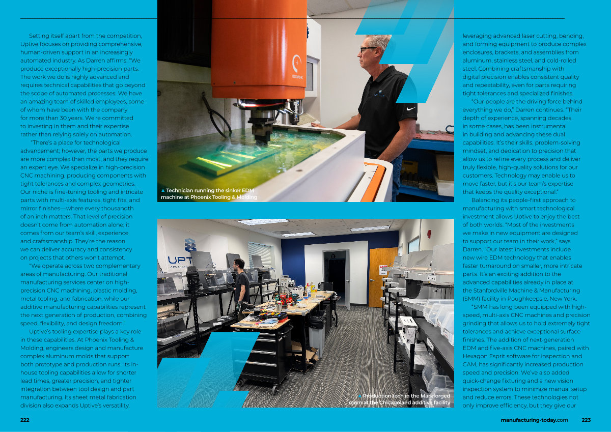 Balancing its people-first approach to manufacturing with smart technological investment allows Uptive to enjoy the best of both worlds.“ Most of the investments we make in new equipment are designed to support our team in their work,” says Darren.“ Our latest investments include new wire EDM technology that enables faster turnaround on smaller, more intricate parts. It’ s an exciting addition to the advanced capabilities already in place at the Stanfordville Machine & Manufacturing( SMM) facility in Poughkeepsie, New York.