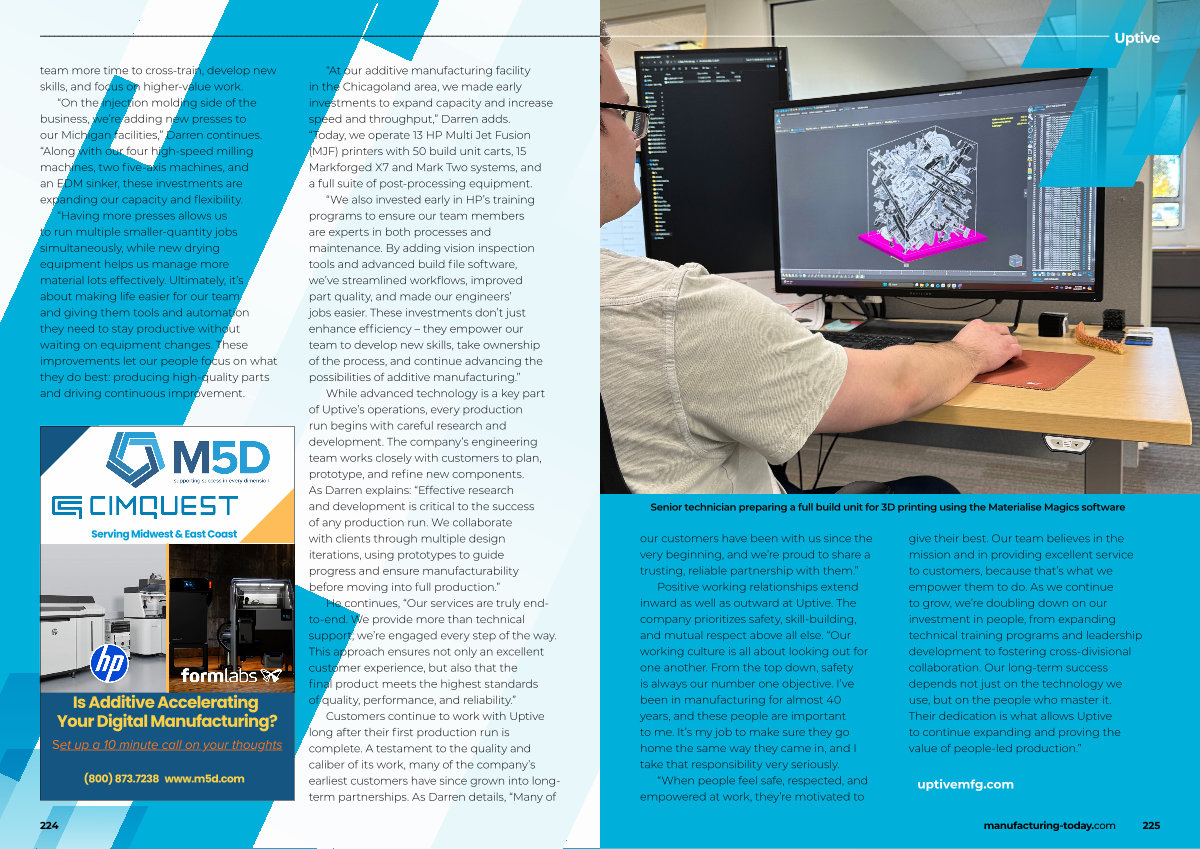 “ When people feel safe, respected, and empowered at work, they’ re motivated to give their best. Our team believes in the mission and in providing excellent service to customers, because that’ s what we empower them to do. As we continue to grow, we’ re doubling down on our investment in people, from expanding technical training programs and leadership development to fostering cross-divisional collaboration. Our long-term success depends not just on the technology we use, but on the people who master it. Their dedication is what allows Uptive to continue expanding and proving the value of people-led production.” ■