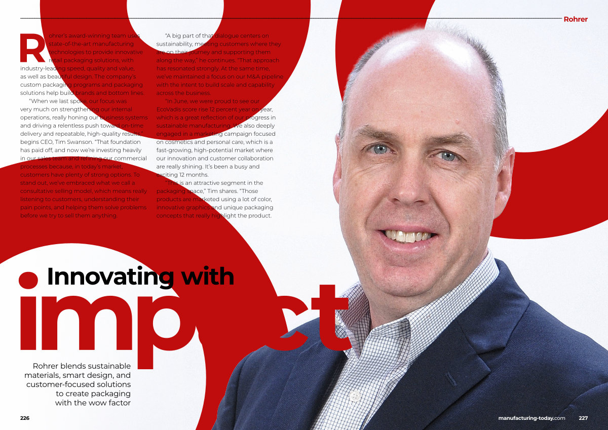 “ When we last spoke, our focus was very much on strengthening our internal operations, really honing our business systems and driving a relentless push toward on-time delivery and repeatable, high-quality results,” begins CEO, Tim Swanson.“ That foundation has paid off, and now we’ re investing heavily in our sales team and refining our commercial processes because, in today’ s market, customers have plenty of strong options. To stand out, we’ ve embraced what we call a consultative selling model, which means really listening to customers, understanding their pain points, and helping them solve problems before we try to sell them anything.